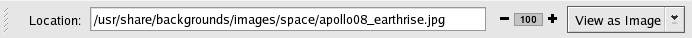 Double-click on any thumbnail icon to view the image at its native size and the image loads within the browser window. To increase or decrease the size of the viewed image in Nautilus, click on the zoom buttons next to the Location: field as shown in Figure 10-2: