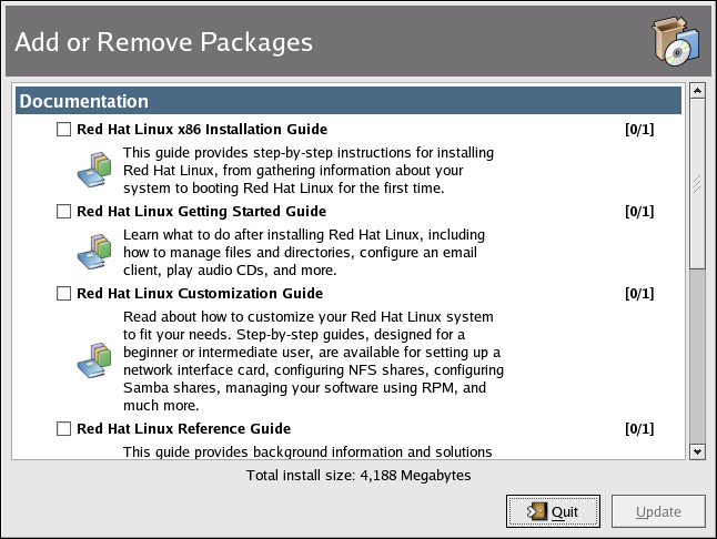 Figure 1-14. Package Management Tool Displaying Documentation Available for Installation